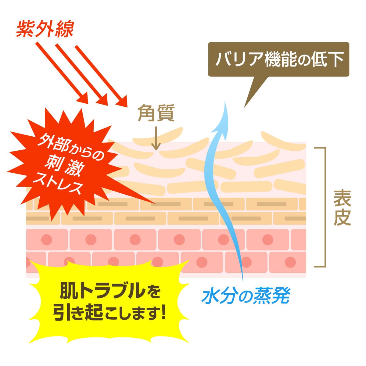 なので、このように紫外線は肌の水分量を低下させ、ターンオーバーを乱れさせるのです。