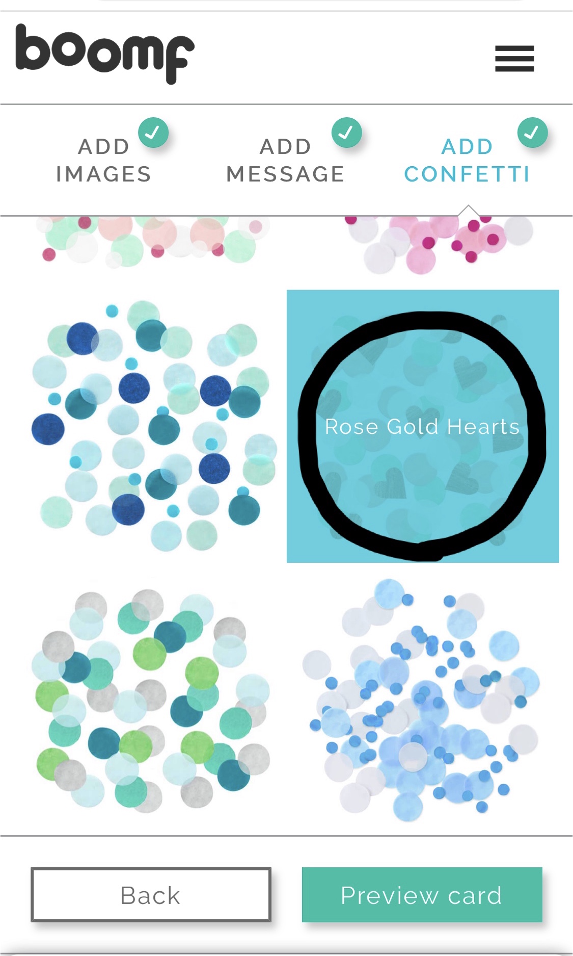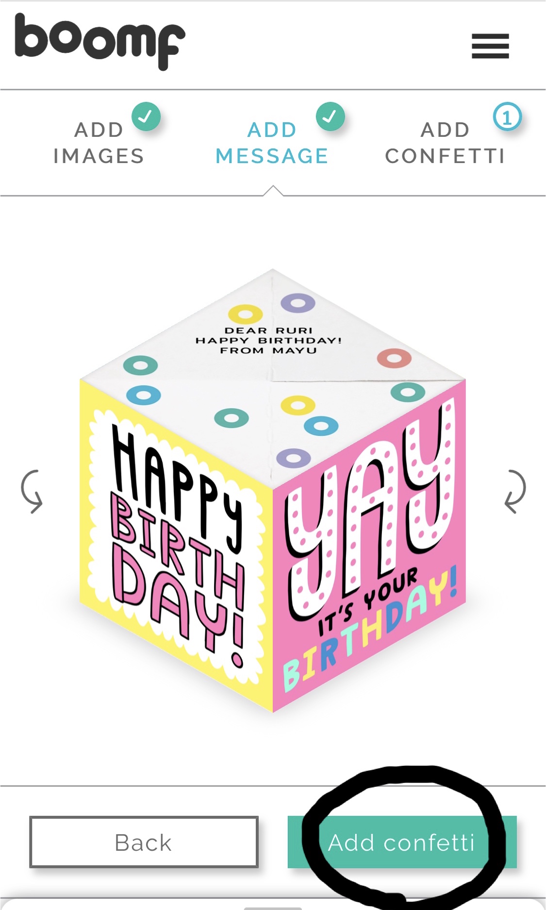 8. Add confetti をタップ