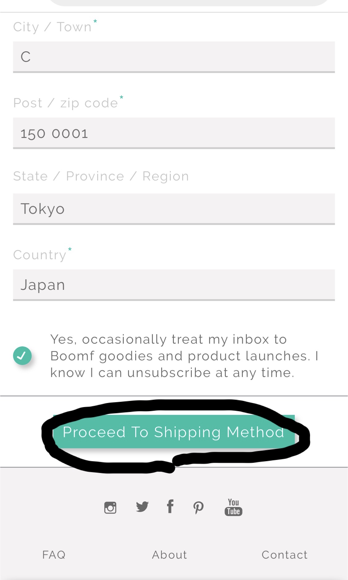Proceed To Shipping Method をタップ