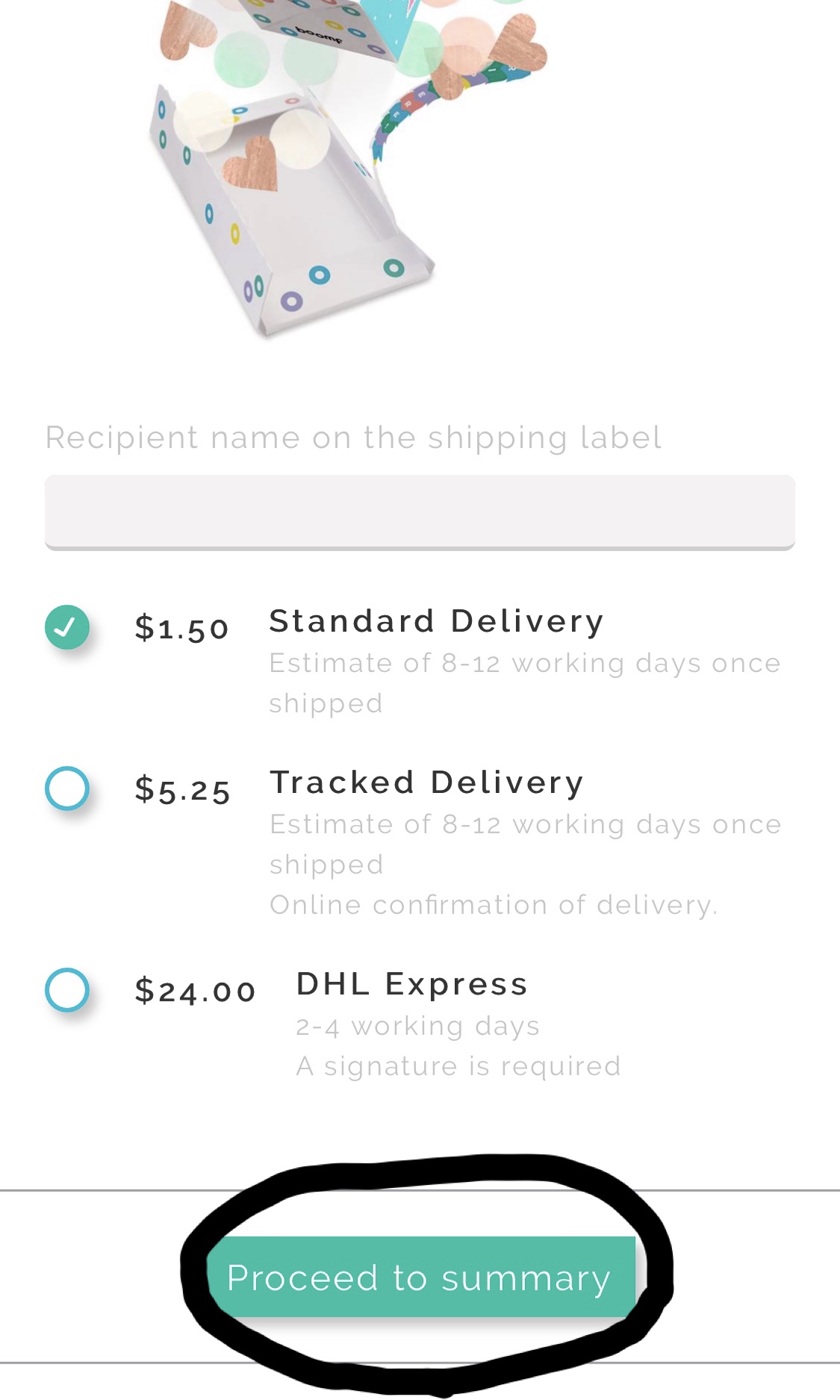 15.配送方法を選んで Proceed to summary をタップ