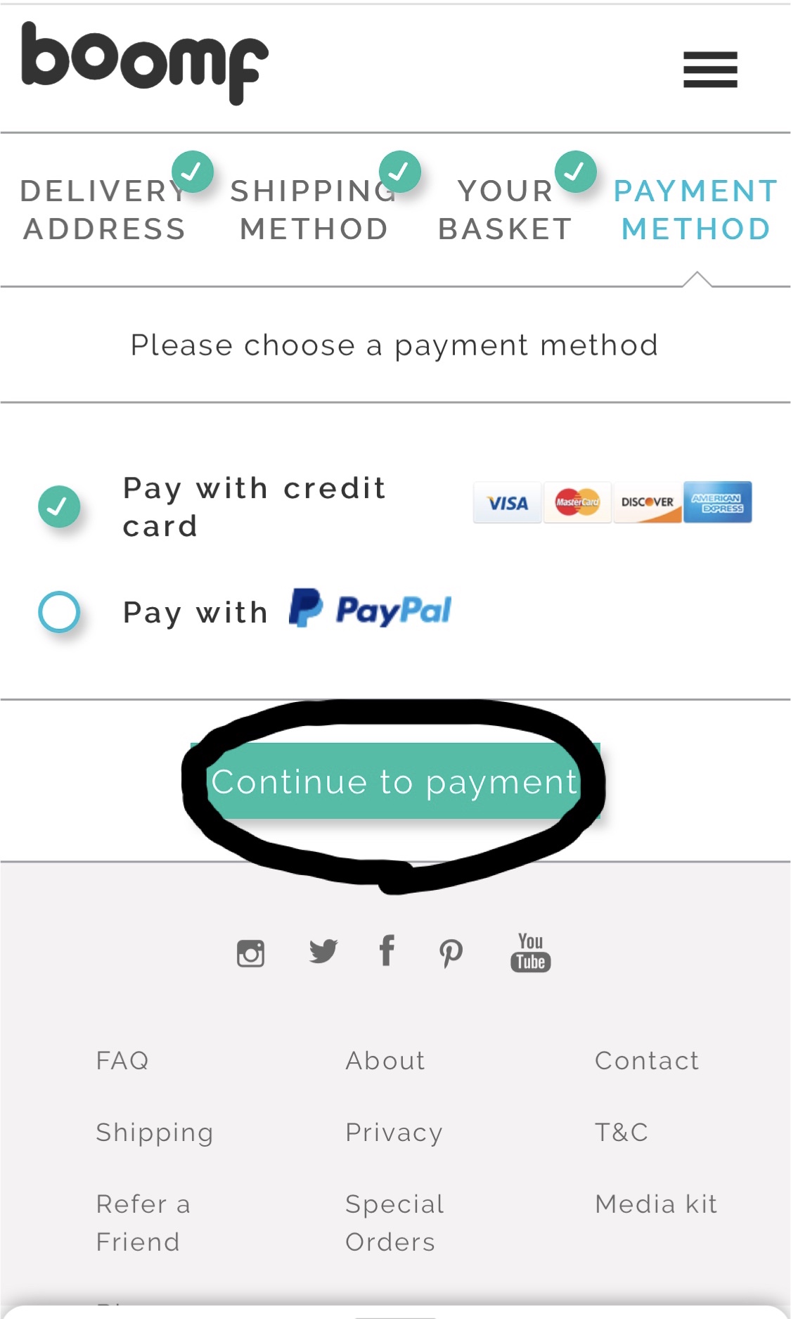 17.購入方法を選択して Continue to payment をタップ