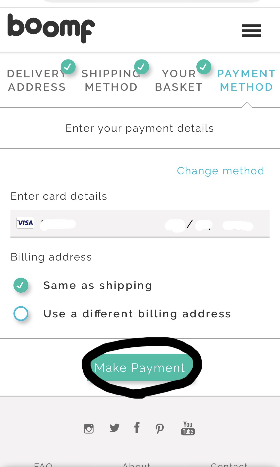 18.カード情報を入力して Make Payment お支払いへ